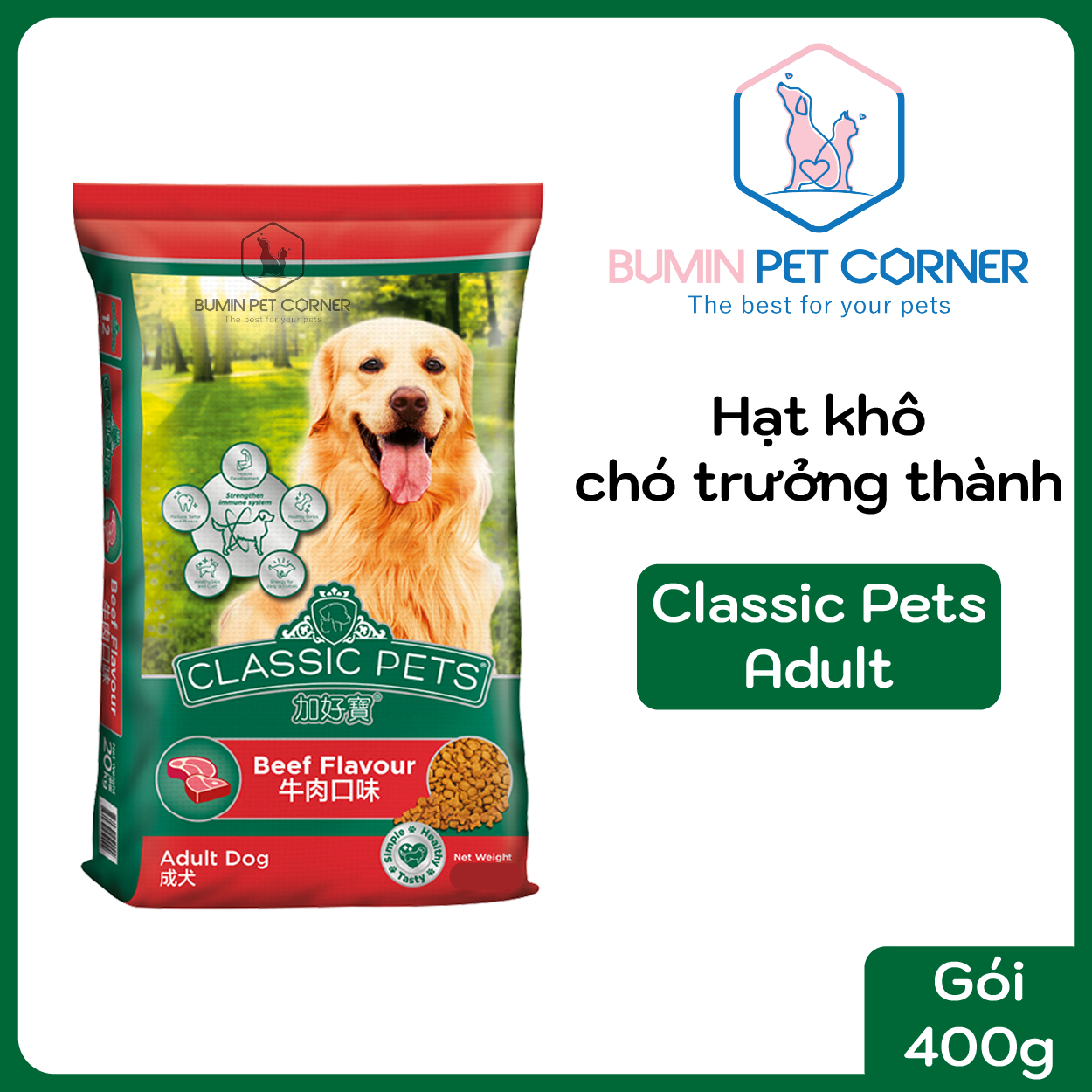 Thức ăn hạt khô cho chó trưởng thành Classic Pets gói 400g - Bumin Pet Corner