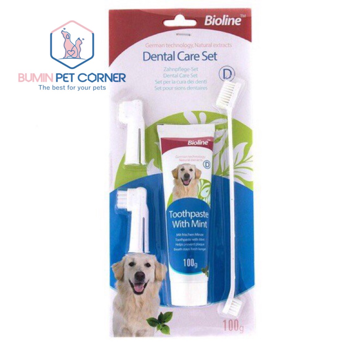 Chăm sóc sức khoẻ răng miệng cho cún yêu tại nhà với bộ kem đánh răng kèm bàn chải của Bioline thật đơn giản và dễ dàng.