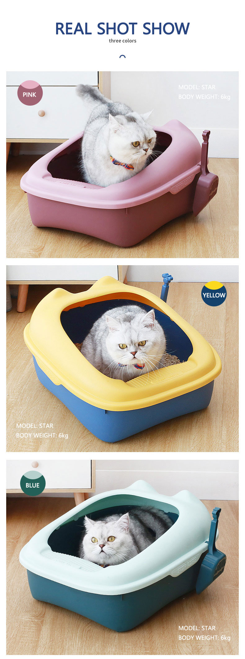 Khay với khoảng không rộng rãi, có thể sử dụng được cho mèo đến 6kg.