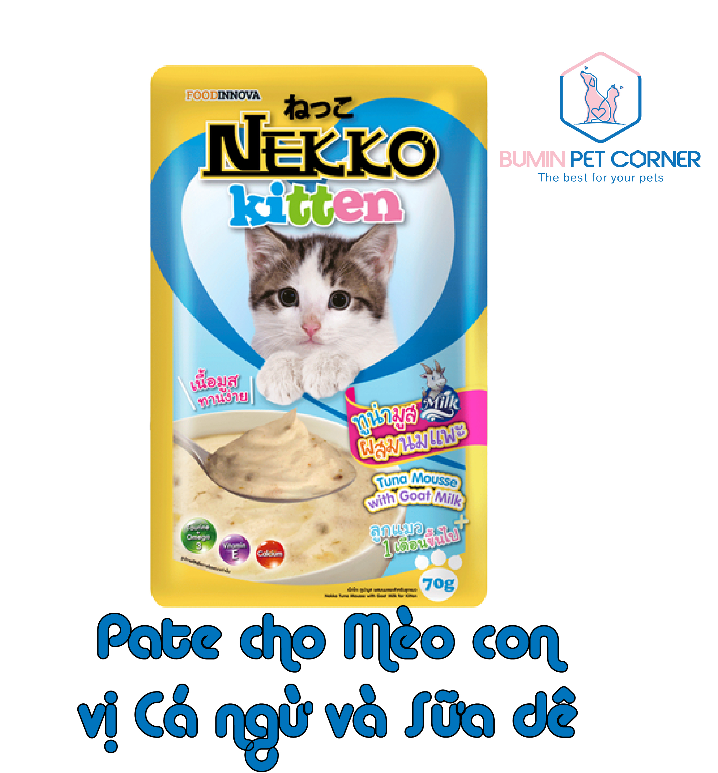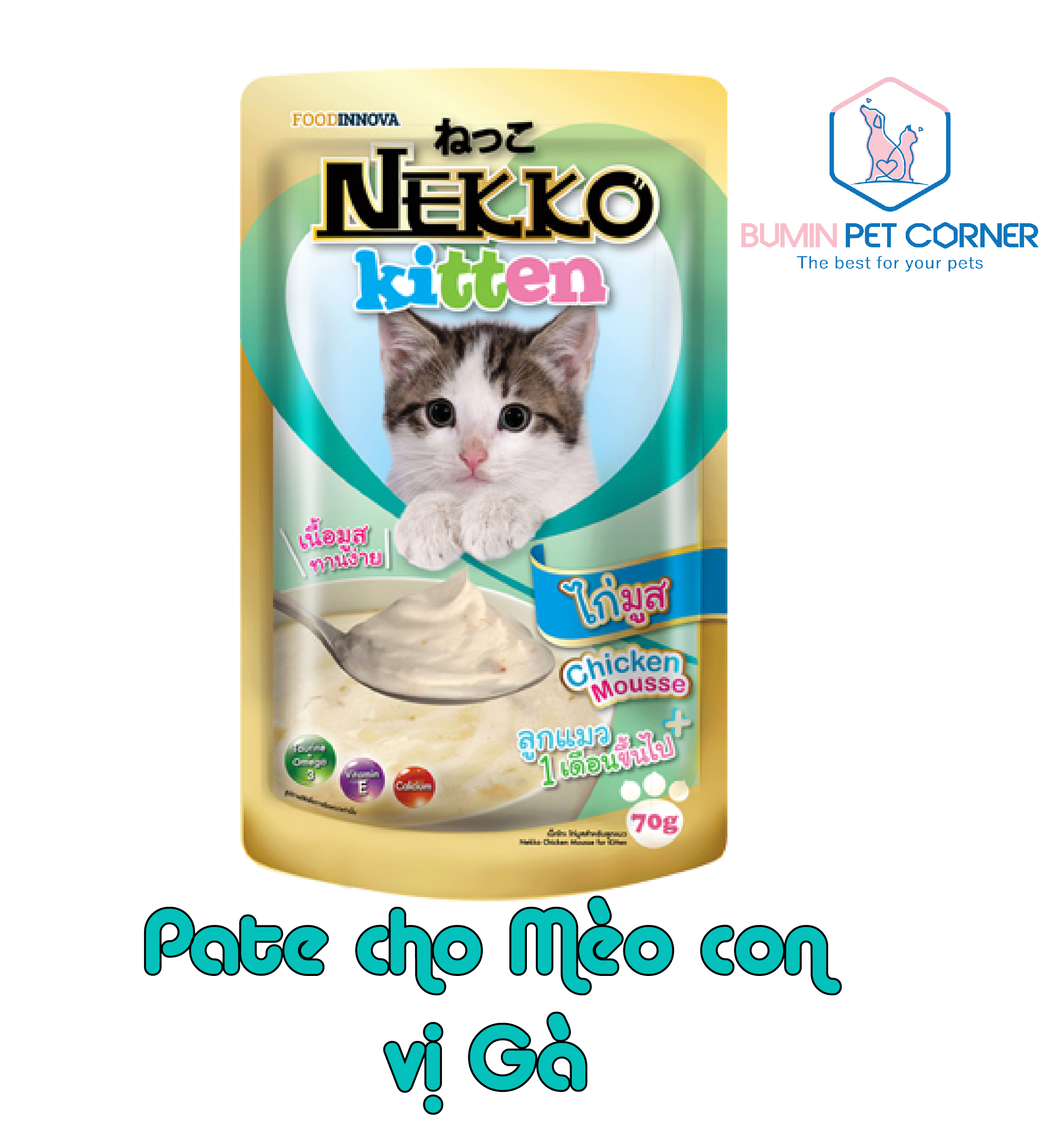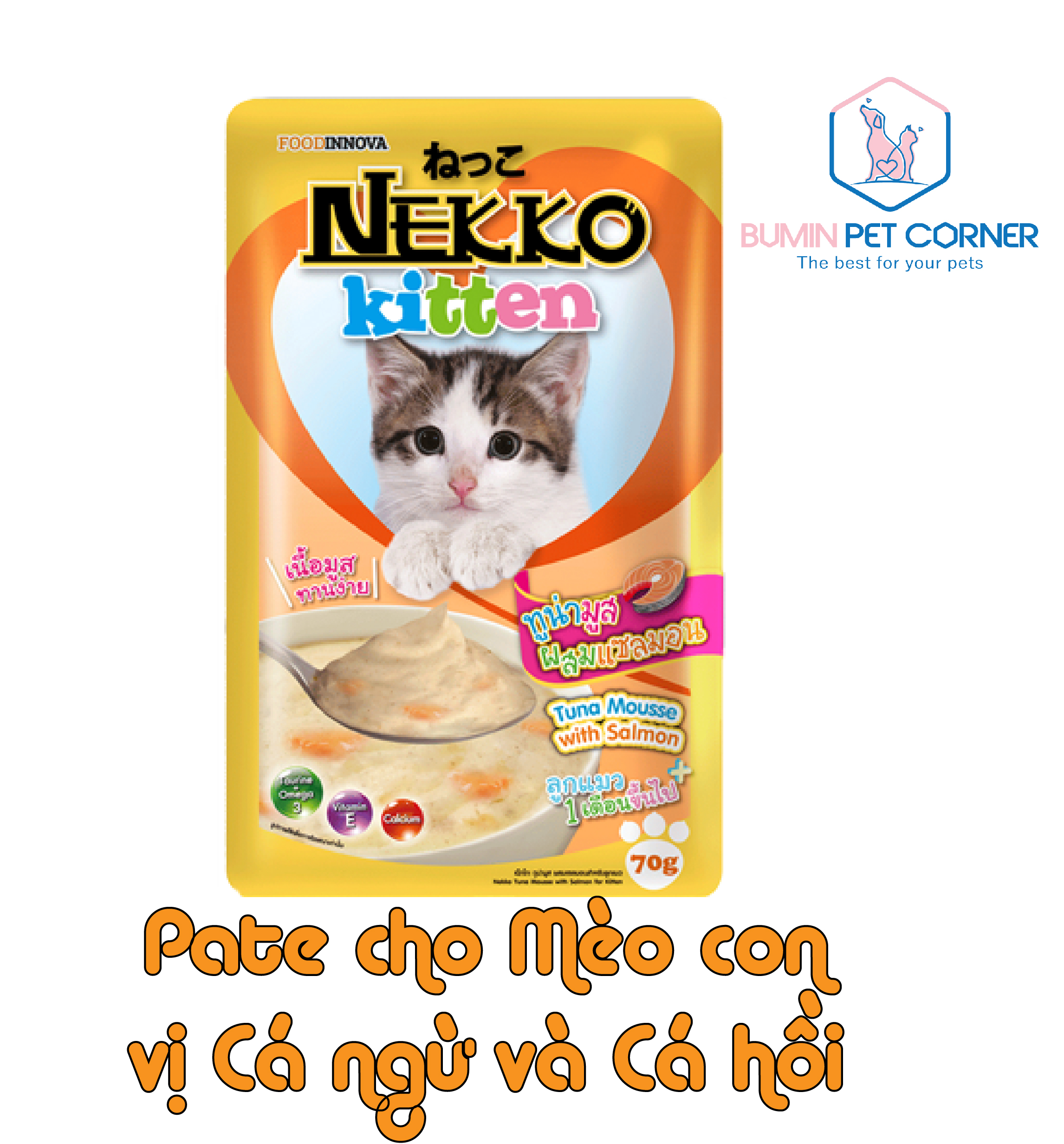 Nekko Kitten là pate cho mèo con dạng mousse thơm ngon, mềm mịn, phù hợp cho các bé mèo con răng còn yếu.