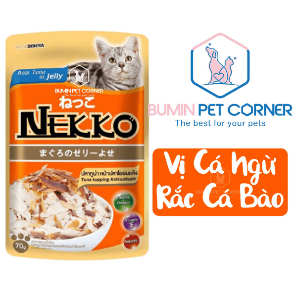 Nekko Jelly là thức ăn cho mèo dạng thạch. Jelly (thạch) trong thức ăn cho mèo mà chúng ta thấy là Gelatin - một loại protein được chiết xuất từ Collagen trong xương và mô da động vật như trâu 🐃, bò 🐄, heo 🐖.
