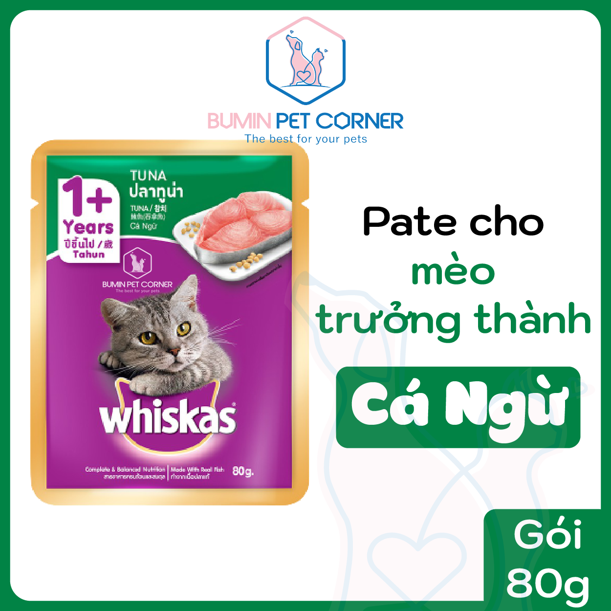 PATE CHO MÈO TRƯỞNG THÀNH WHISKAS VỊ CÁ NGỪ GÓI 80G - Bumin Pet Corner
