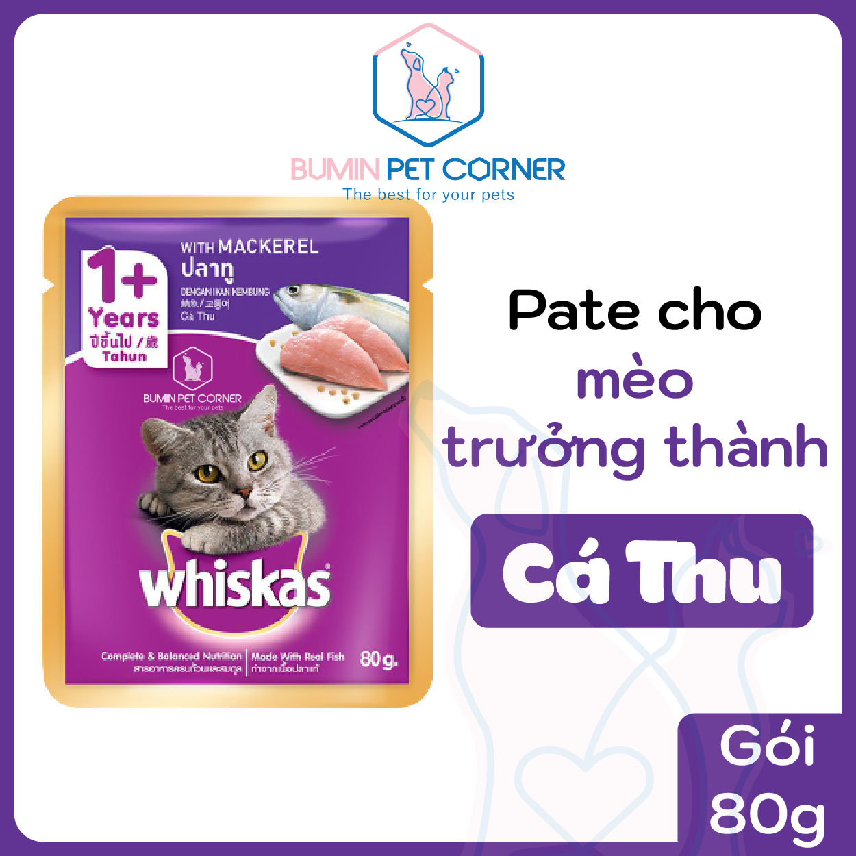 PATE CHO MÈO TRƯỞNG THÀNH WHISKAS VỊ CÁ THU GÓI 80G - Bumin Pet Corner