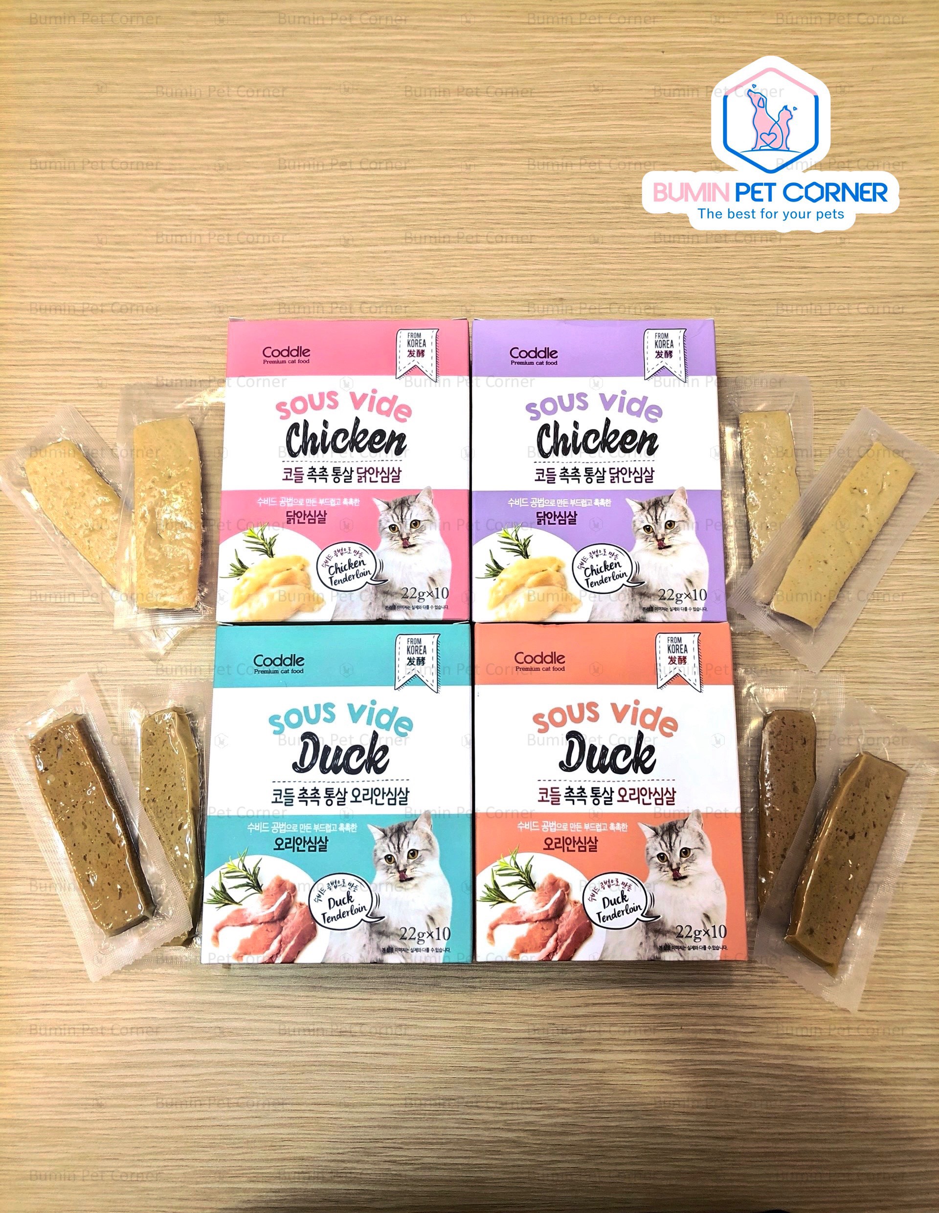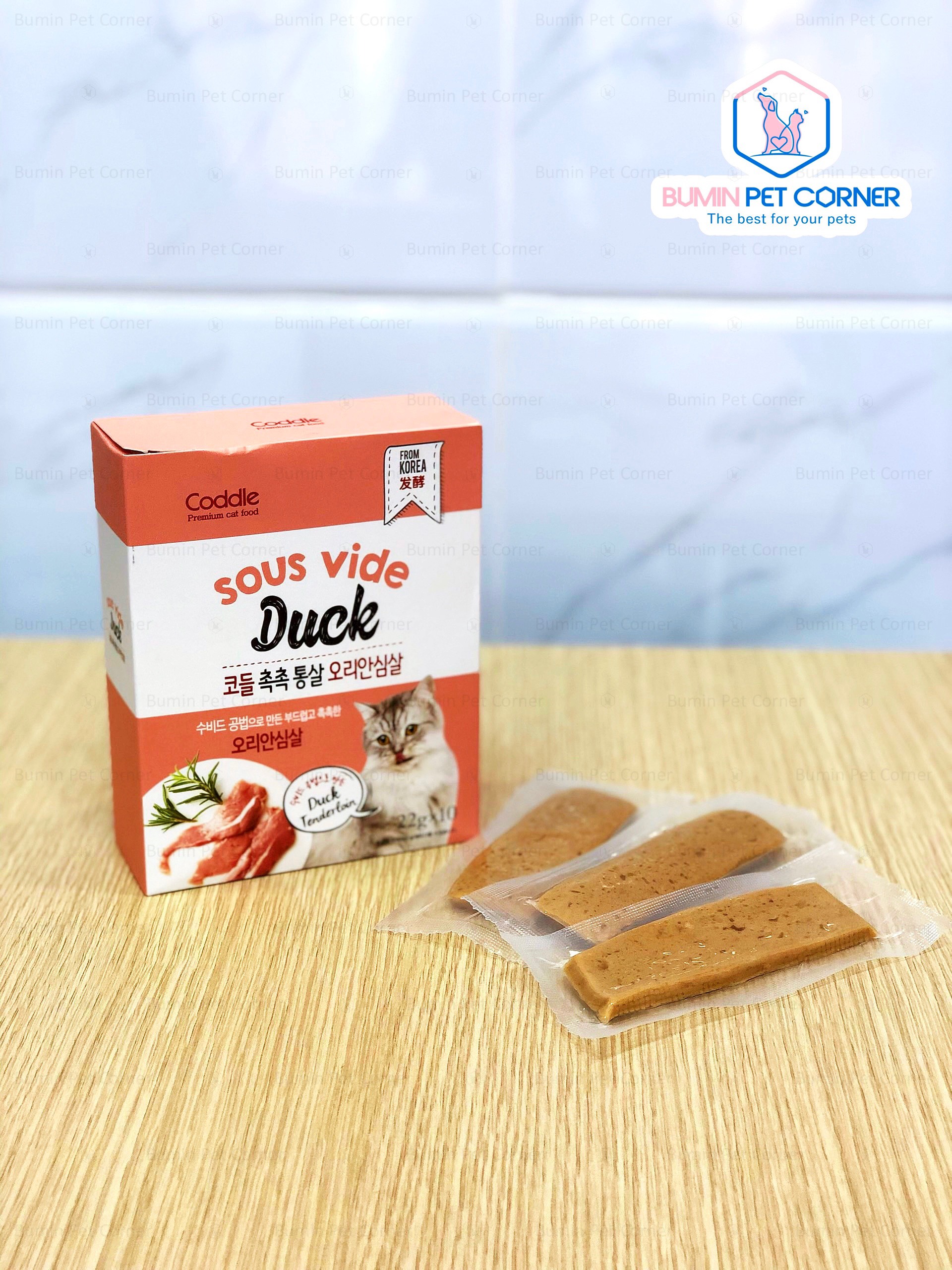 Sản phẩm thịt ăn liền cho mèo Coddle được chế biến giữ trọn hương vị thơm ngon, mang lại nhiều dinh dưỡng có lợi cho thú cưng.