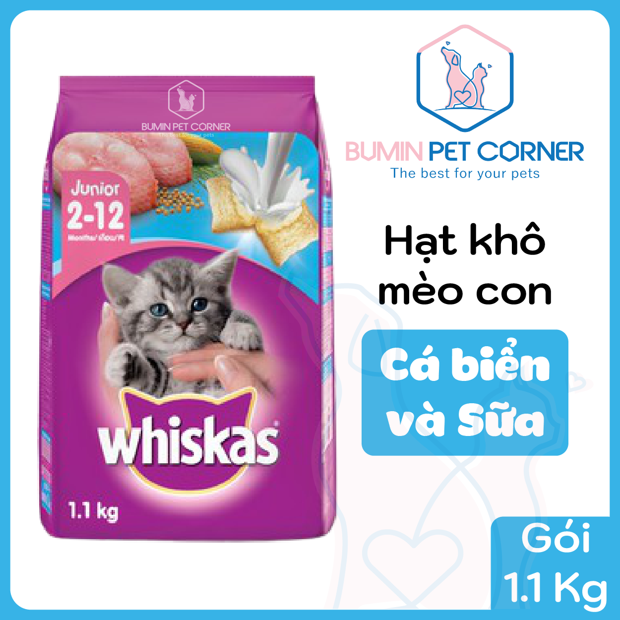 Thức ăn hạt khô cho mèo con Whiskas Junior vị cá biển và sữa gói 1.1kg - Bumin Pet Corner