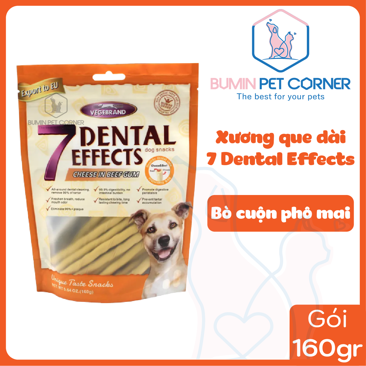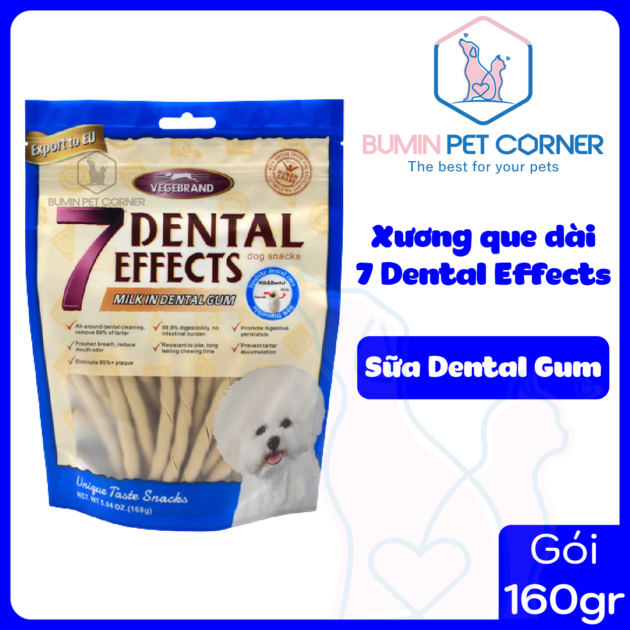 Xương que dài gặm sạch răng cho chó 7 Dental Effects gói 160g - Bumin Pet Corner